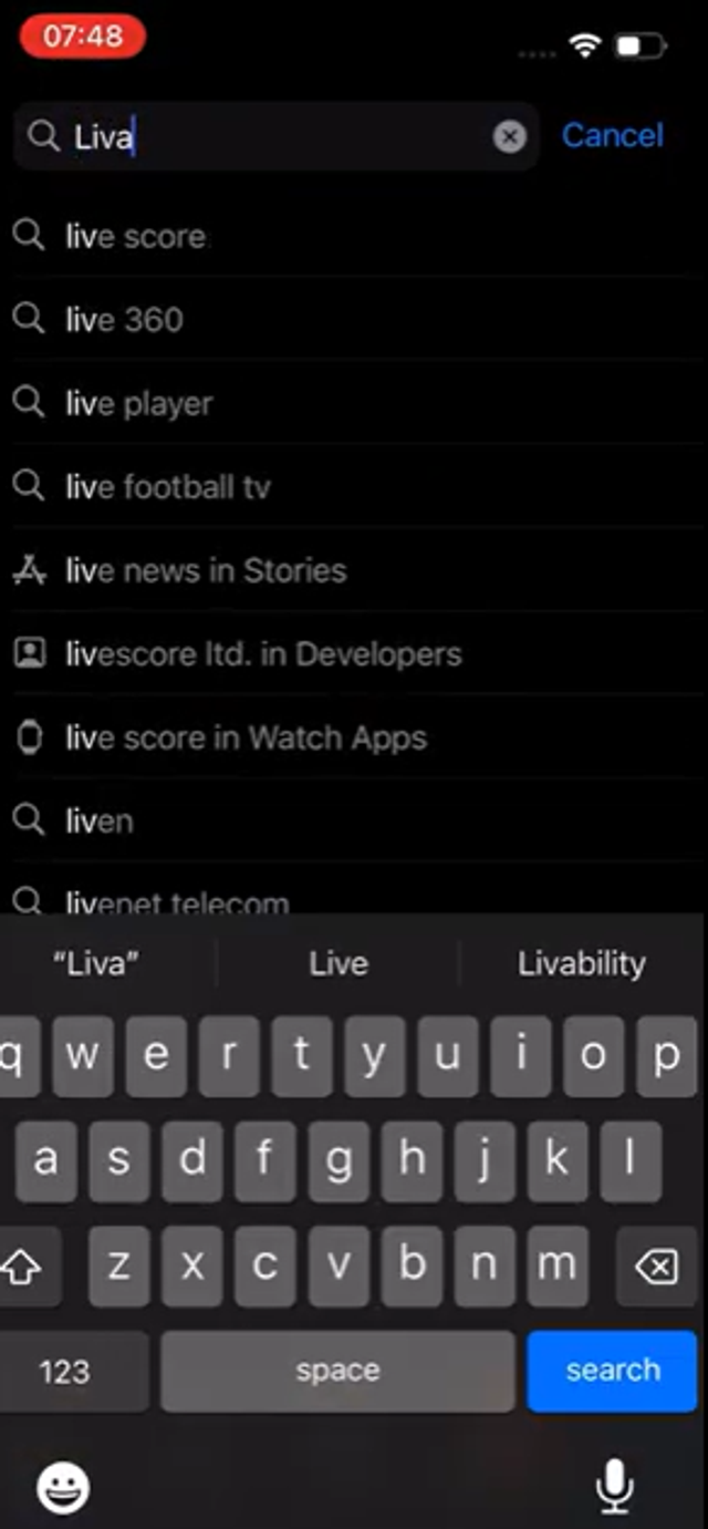 2. Click on the search bar at the top of the screen and type "Liva", then press enter